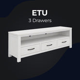 Foxglove ETU Entertainment TV Unit 166cm 3 Drawer Solid Mt Ash Wood - White