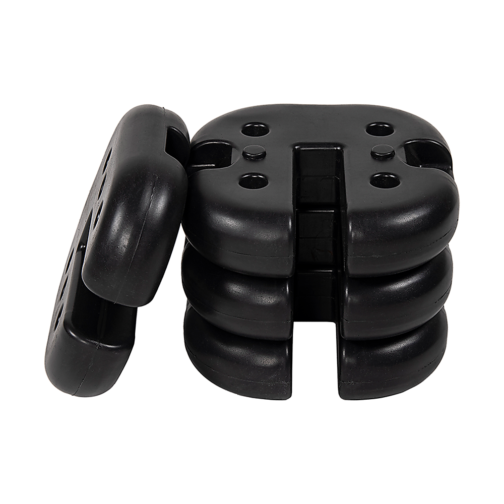 With their heavy-duty construction, these weights should last for years to come. Done in neutral black, they'll look great no matter what colour your canopy or tent is. Thanks to their waterproof rubber coating, they'll hold up well even during the rainy season. And, that coating also cushions your tent or canopy's frame from scratches and dents. Even better, these tent leg weights work with all kinds of frames and on practically any surface. They're easy to grip and easy to install. Don't wait for summer to arrive to have everything ready for outdoor living. Order yours today.