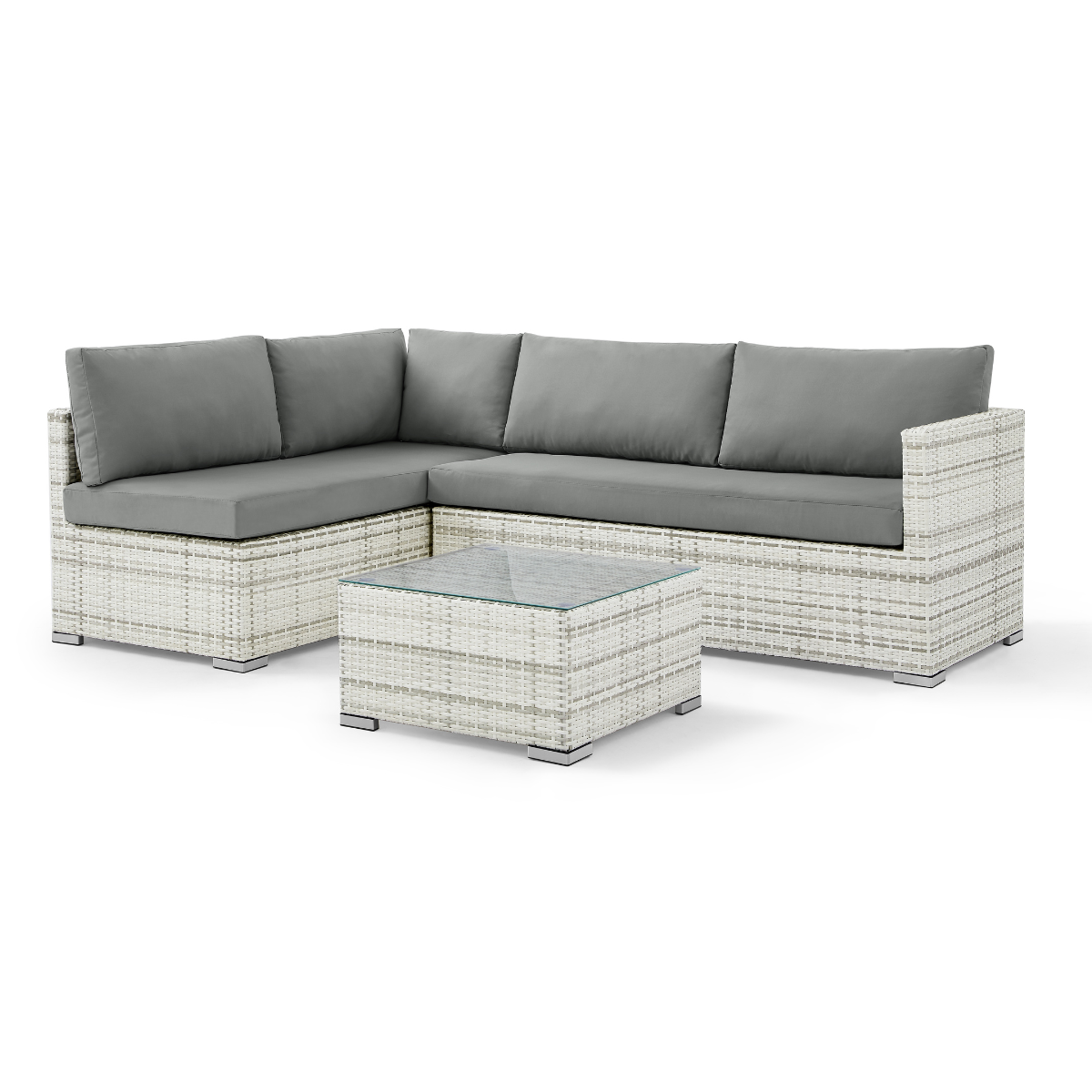 Bring some of that contemporary panache into the outdoors! With its elegant L-shaped lines and eye-catching rattan accents, the Archie lounge set turns your patio or deck into an extension of your living room. The matching coffee table and spacious five seats make it just right for entertaining friends and family under the stars.