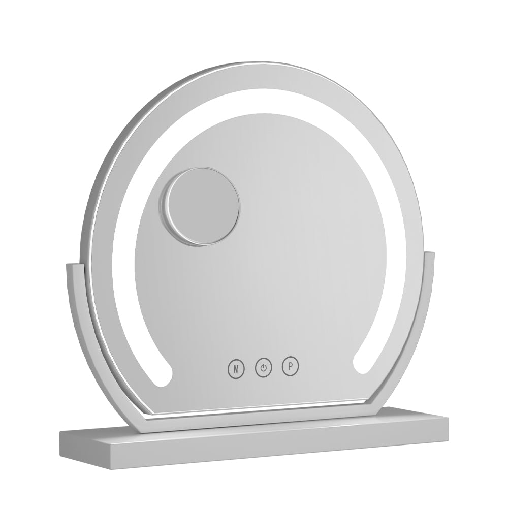 Get the star treatment with our gorgeous Embellir Make-up Mirror. Framed with bright LED bulbs, this mirror really lights up your visage through your daily makeup regimen. The aluminium frame is sturdy, lightweight, and adds a touch of glamour to the entire mirror. The frame sits on an equally smooth powder coated MDF base for stability and durability. Put it straight on your existing vanity or mount to the wall for additional space. The mirror can be rotated 180° so you can look beautiful at every angle. Even more wonderful is that the LED light can be easily adjusted for brightness and colour temperature using our intelligent touch controls. Turn your bedroom or bathroom into a celebrity set overnight with our Embiller Make-up Mirror, and enjoy beauty in all its illuminated brilliance.