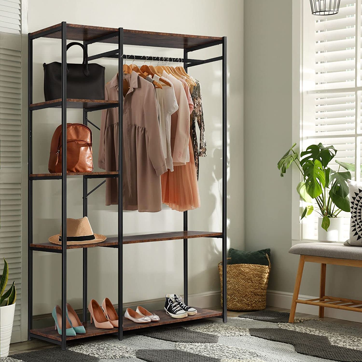 Industrial Garment Coat Rack Hanger Organizer and Shoe Storage (Black)