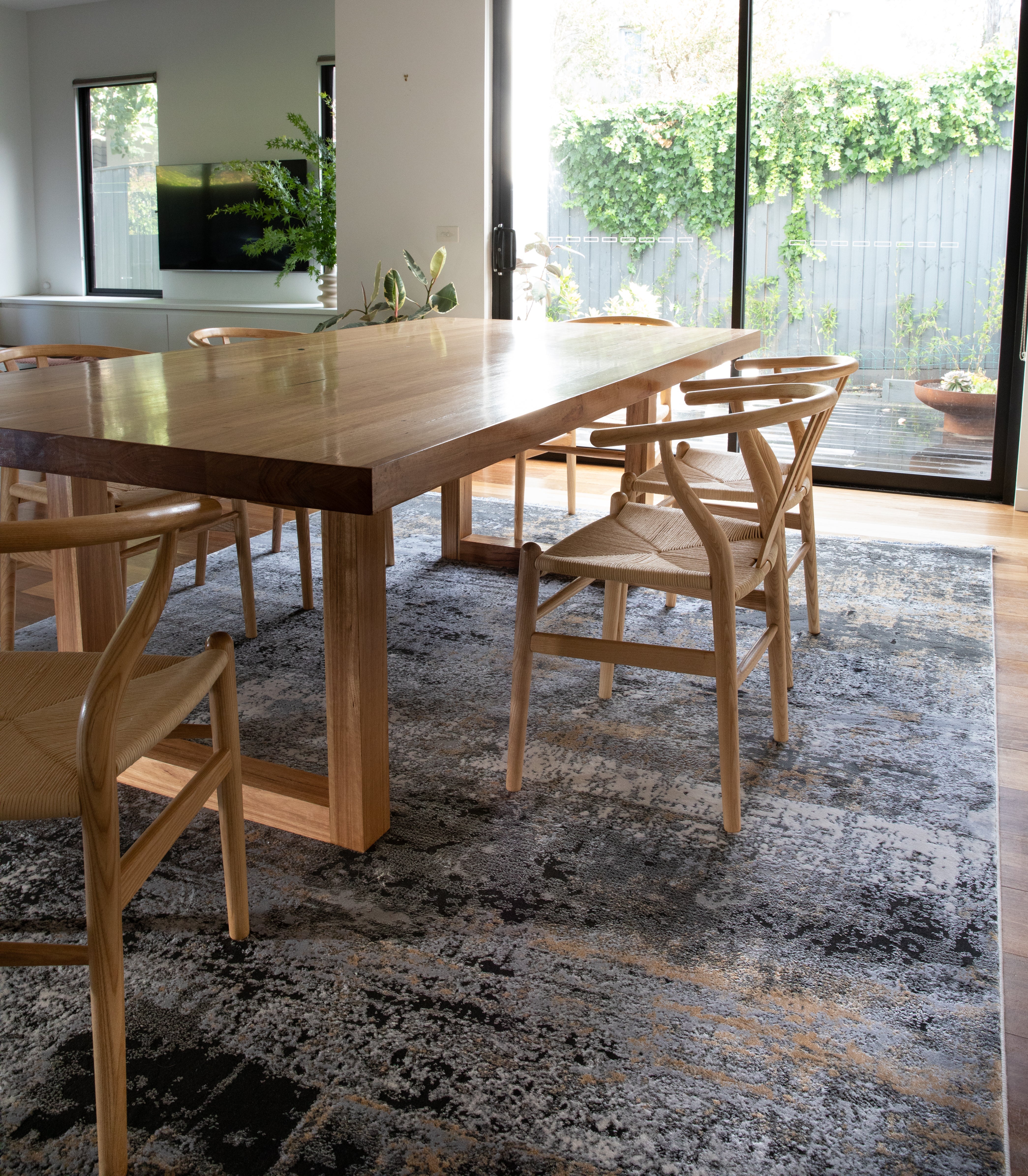 A most fascinating feature of this collection of rugs, Rosaleen included, is the inherent two-way colour variation that the material displays. The duality in perceived colour tones from opposite sides of the rug makes for an even greater experience, giving you two filters of the design to enjoy.