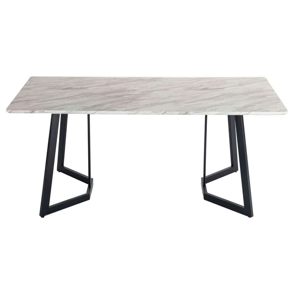 Brings elegance to your dining space with this marble-effect dining table, powder-coated metal feet give this dining room table extra sturdiness.