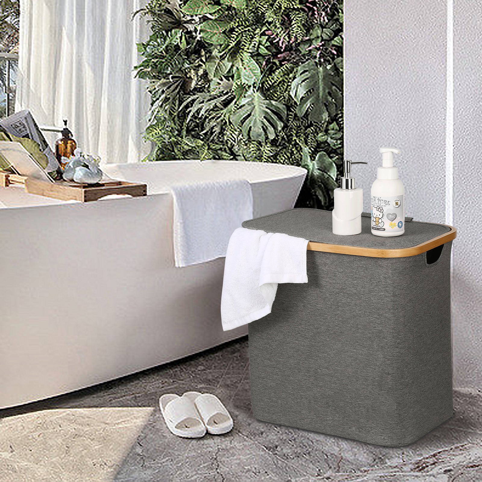 Ringle Bamboo Twin Laundry Hamper Foldable Storage Basket