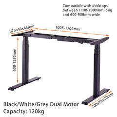 Motorised Height Adjustable Desk Dual Motor: 60-125cm, Capacity: 120kg