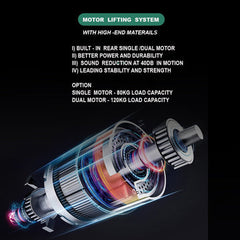 Amazingooh provide selection of single/dual motor lifting system. This translates to fast, smooth and quiet operation, with the added benefit of superior durability and up to 120kg (Dual motor) capacity. Furthermore, unlike other models on the market, the motors are neatly and safely enclosed.